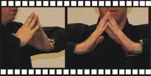 Place palms together as if praying.